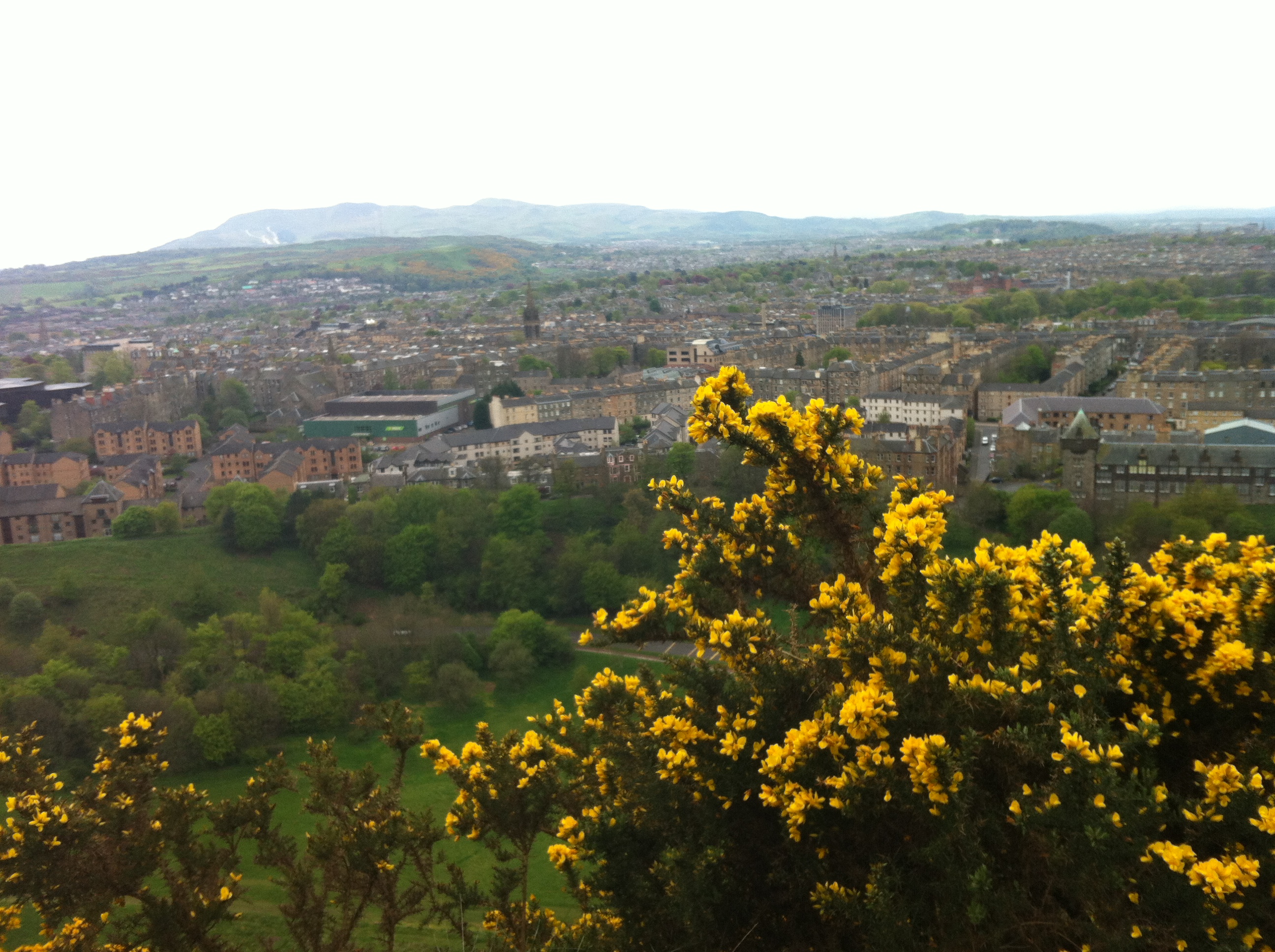 The weather here is different from Paris; it reminds me of summer in Maine, where gray skies often stiff-arm heat, and allow the beauty of the land itself to claim the attention it deserves. I’ve seen a peek of blue here and there since arriving in Edinburgh, but mainly the sky is absent of color. In that, there is a feeling of secrecy, almost as if the clouds are creating a little dome of insulation for the city. The colors elsewhere are gorgeous, though; today I spent a few hours hiking up and around Arthur’s Seat, scrambling over rocks and taking too many pictures of the city below.