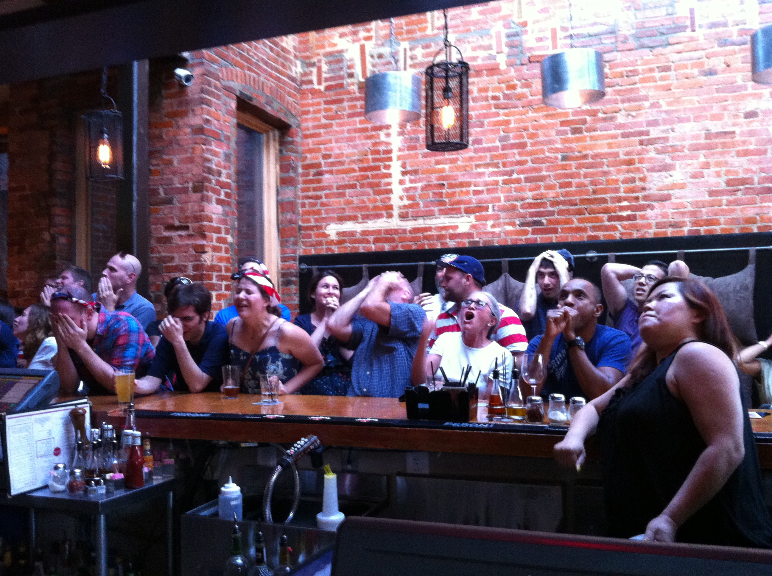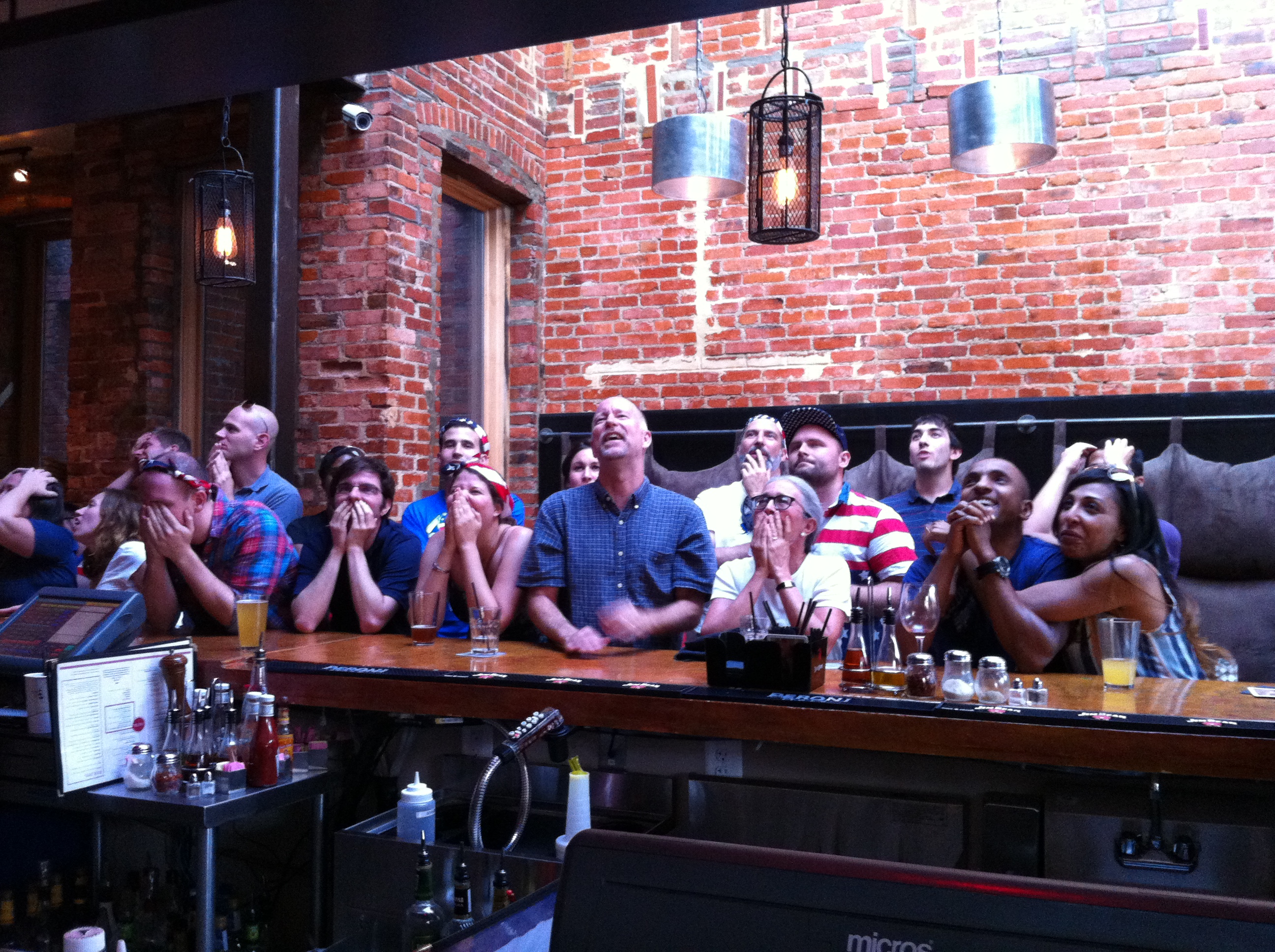 In any case, all of this is to say that I started feeling a little bored last night, even as the game hit its fever pitch level of excitement in the last few minutes. I know that’s controversial, but though I was happy to be there, I started thinking about ducking out of the bar and finding a place outside to write; it was a beautiful evening. Instead, I tuned in to the people around me, who – by all appearances – were on a satisfyingly emotional roller coaster.
