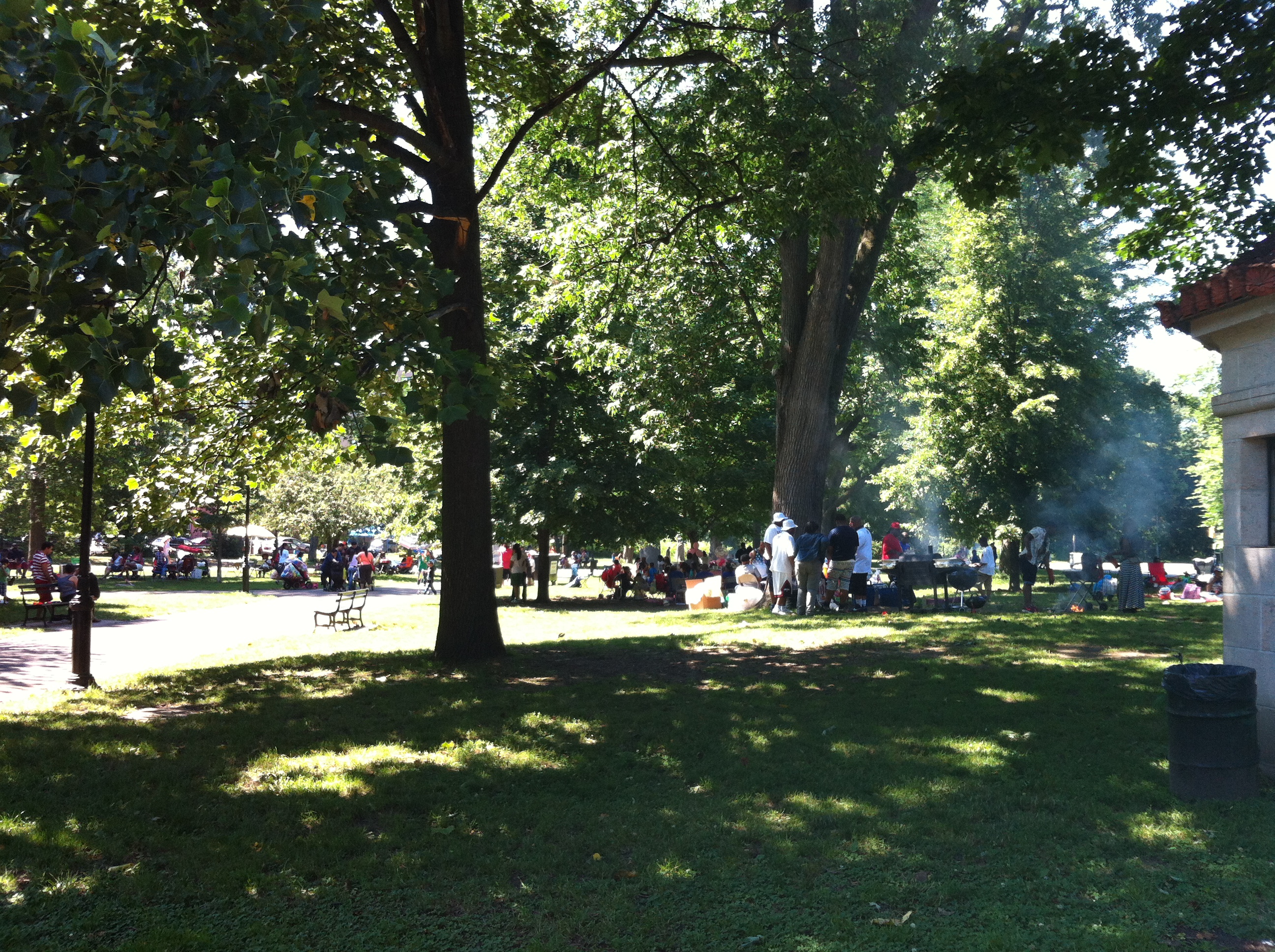 But out of the entire weekend, I found summer most clearly in Prospect Park, where so many groups gathered on Saturday that the air was wholly infused with the smell of barbequed meat. I wanted to join in, to walk up to a random mix of people and anonymously fold into their landscape, which seemed, over and over again, like the realization of DJ Jazzy Jeff and the Fresh Prince’s “Summertime.” It was all there: the heat, the preening, the basketball, the summer madness, the air full of love and of happiness.