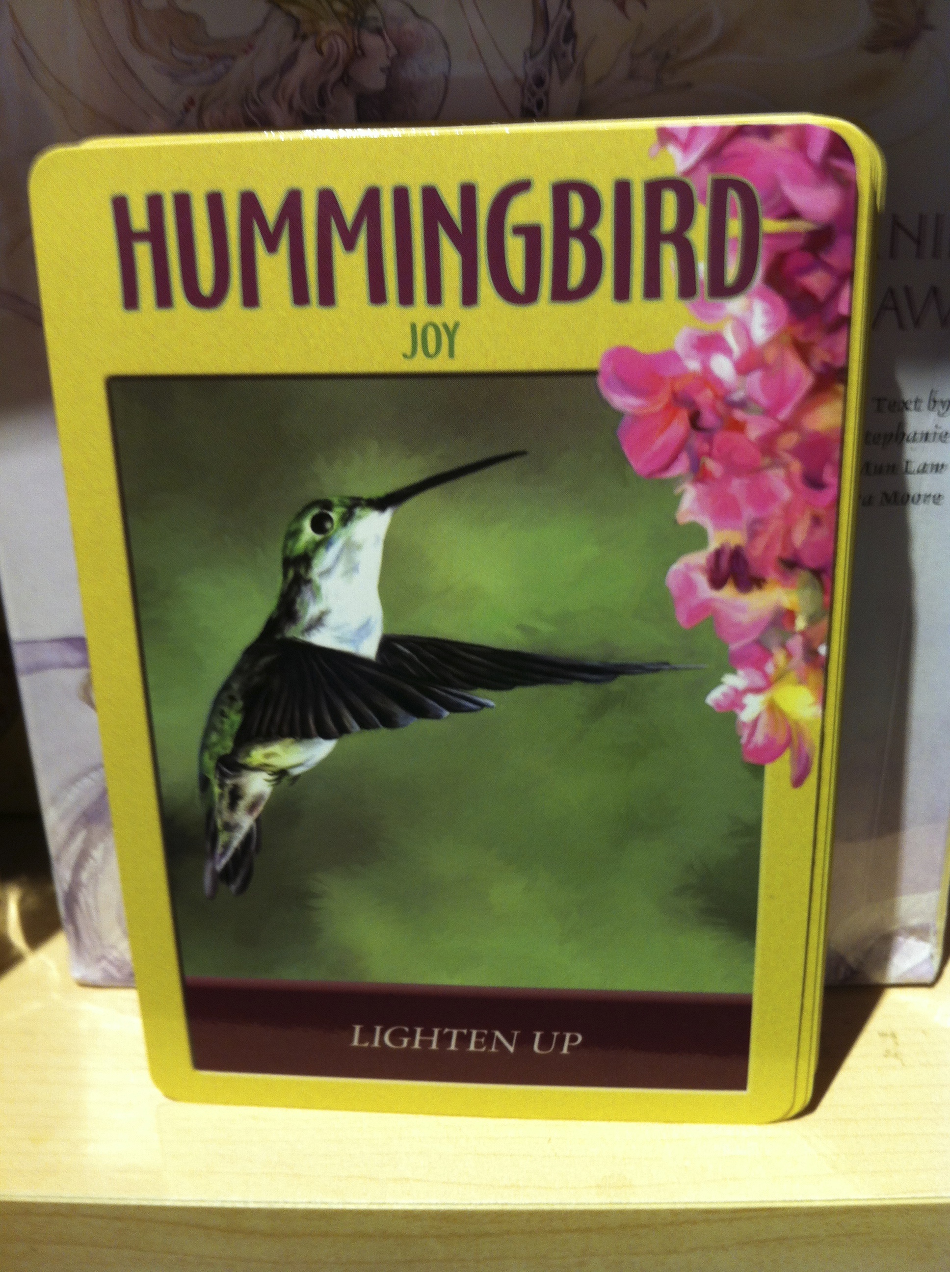 Interesting. I actually consider the hummingbird my spirit animal. (Though I know nothing about how an animal becomes a spirit animal. Are there certain animals from which to choose? Is it a choice at all?) There is an Anna’s Hummingbird, which is pretty exciting, and I love watching them drum out their rhythms, so graceful and so intense.