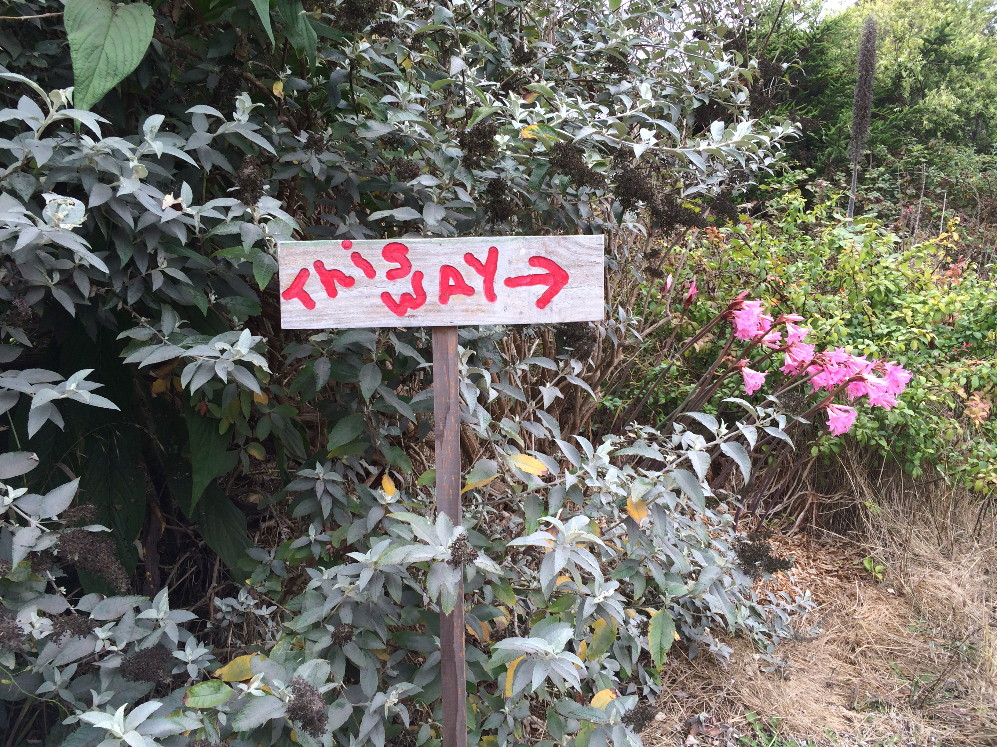 Usually, the colors here are more vibrant on the ground. People have bountiful, magnificent gardens, full of dahlias and roses and plants I do not yet know. I’ve been told that it’s possible to grow just about anything here, with minimal effort. I have a hydrangea in my yard, the deep purple-blue that causes me to look twice, and fiery lantanas. I’d like to add more; a girlfriend inland is a natural, knowledgeable gardener, and a resource. There are many nurseries here, too, including one where a man I knew years ago still works, I believe.