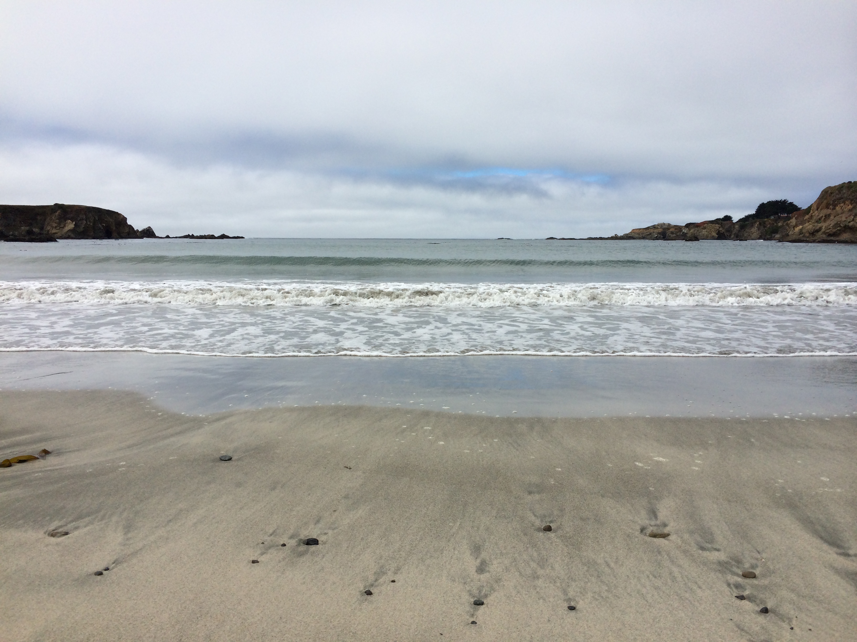 On my sixth morning here, the day starts with a shining sun for the very first time. Normally gray and foggy, this feels like cause for celebration. The ocean is bright blue, outlined with the white foam of waves breaking, and I ran down to it this morning, soaking up the sound of water and birds, enjoying the fact that there were colors in the sky: blue, and pink, and orange.