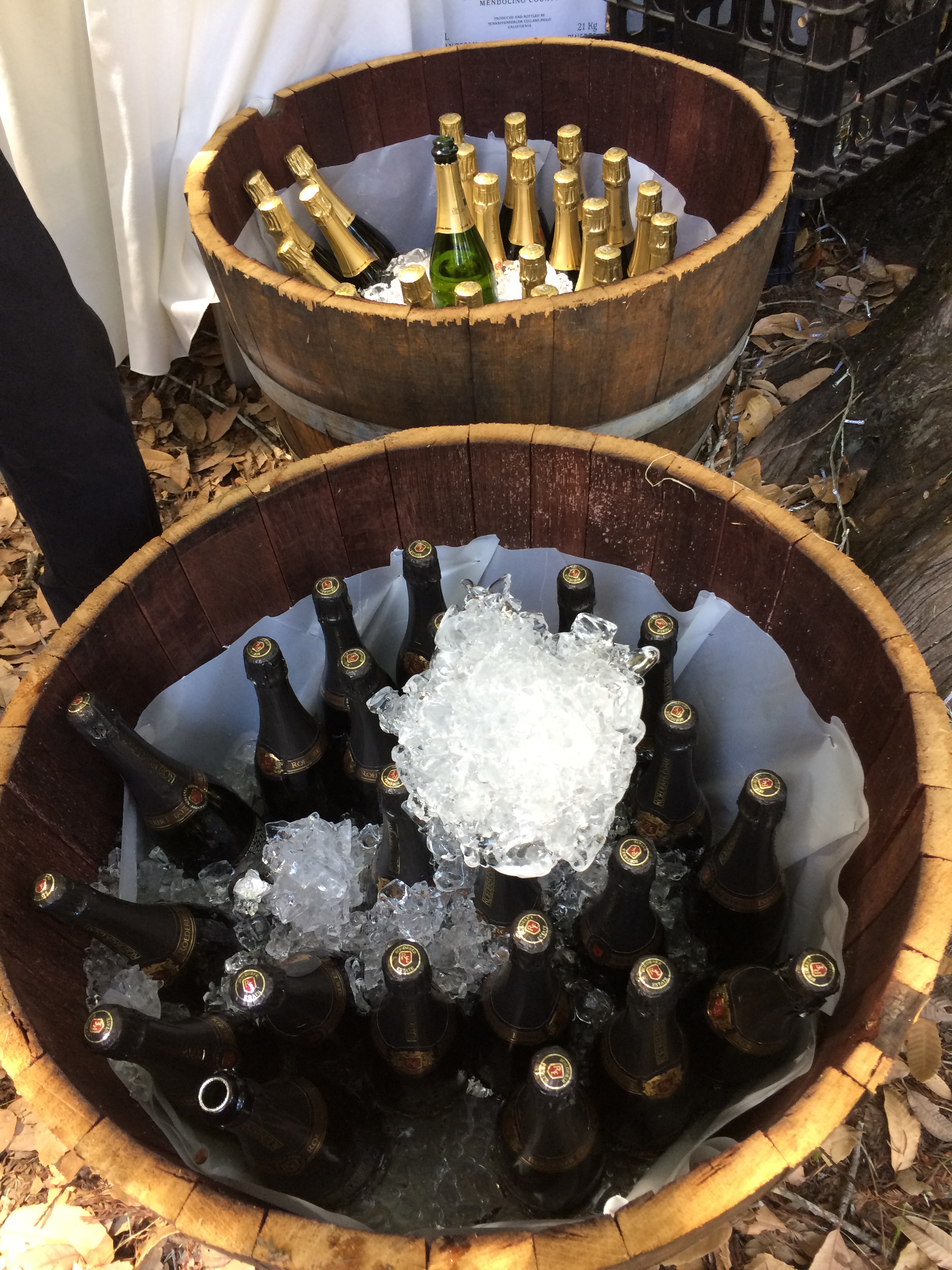 The couple mingled with guests before the ceremony, the bride popping bottles of champagne for distribution and consumption long before she exchanged vows with her betrothed. I was struck by the casual, loving, and enthusiastic atmosphere; guests drank champagne not only because – well, champagne is delicious and should be consumed frequently – but also because the occasion was imbibed with an effervescent joy that paired oh-so-well with bubbles.