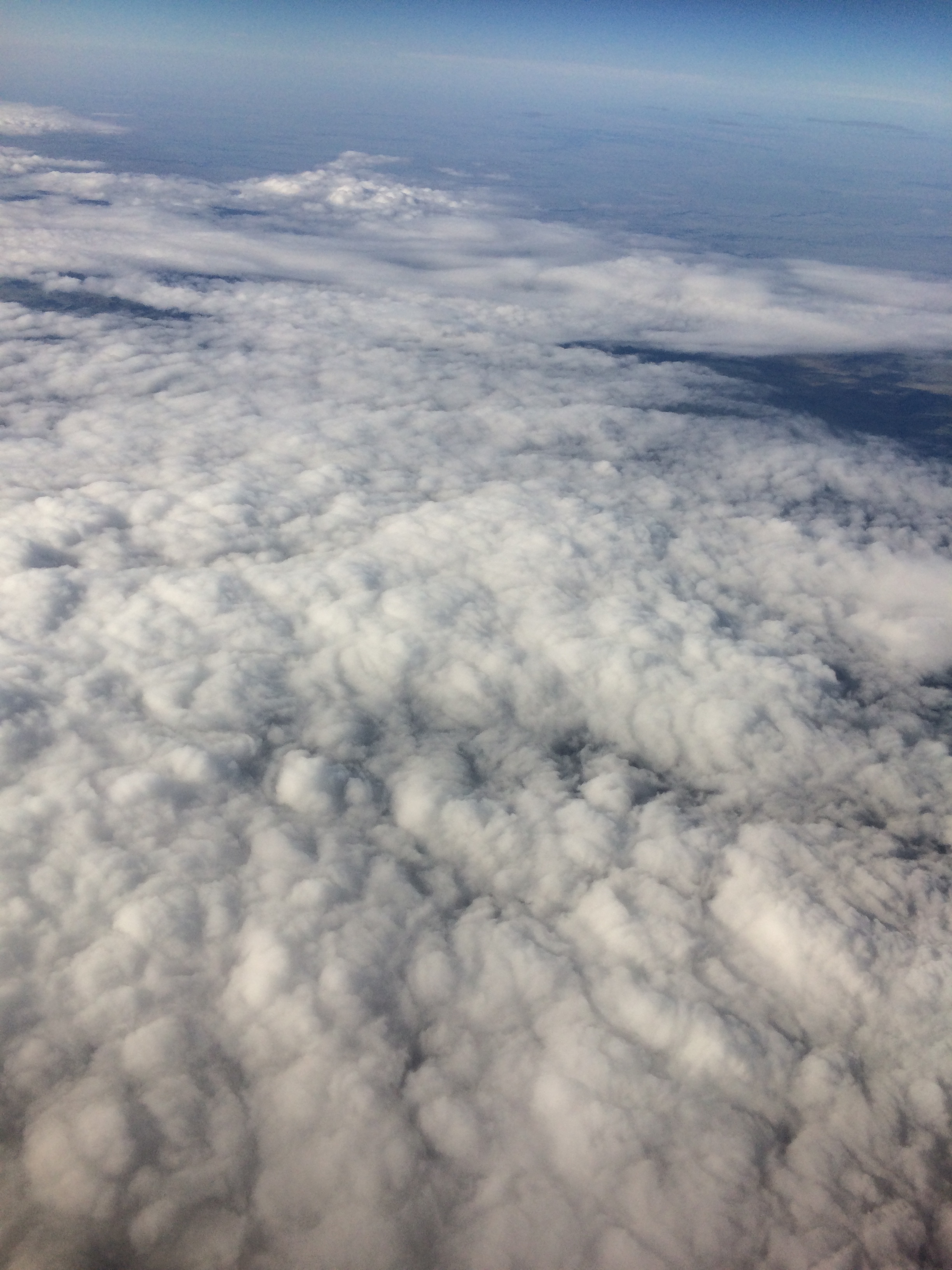 Perhaps people on the ground below this plane are planning for rain; up here, though, we’ve got clear skies ahead. I can’t really imagine what I’ll see when we land; I know that the world will be waiting, offering up its beauty and asking me, only, to take notice, pay attention, and enjoy.