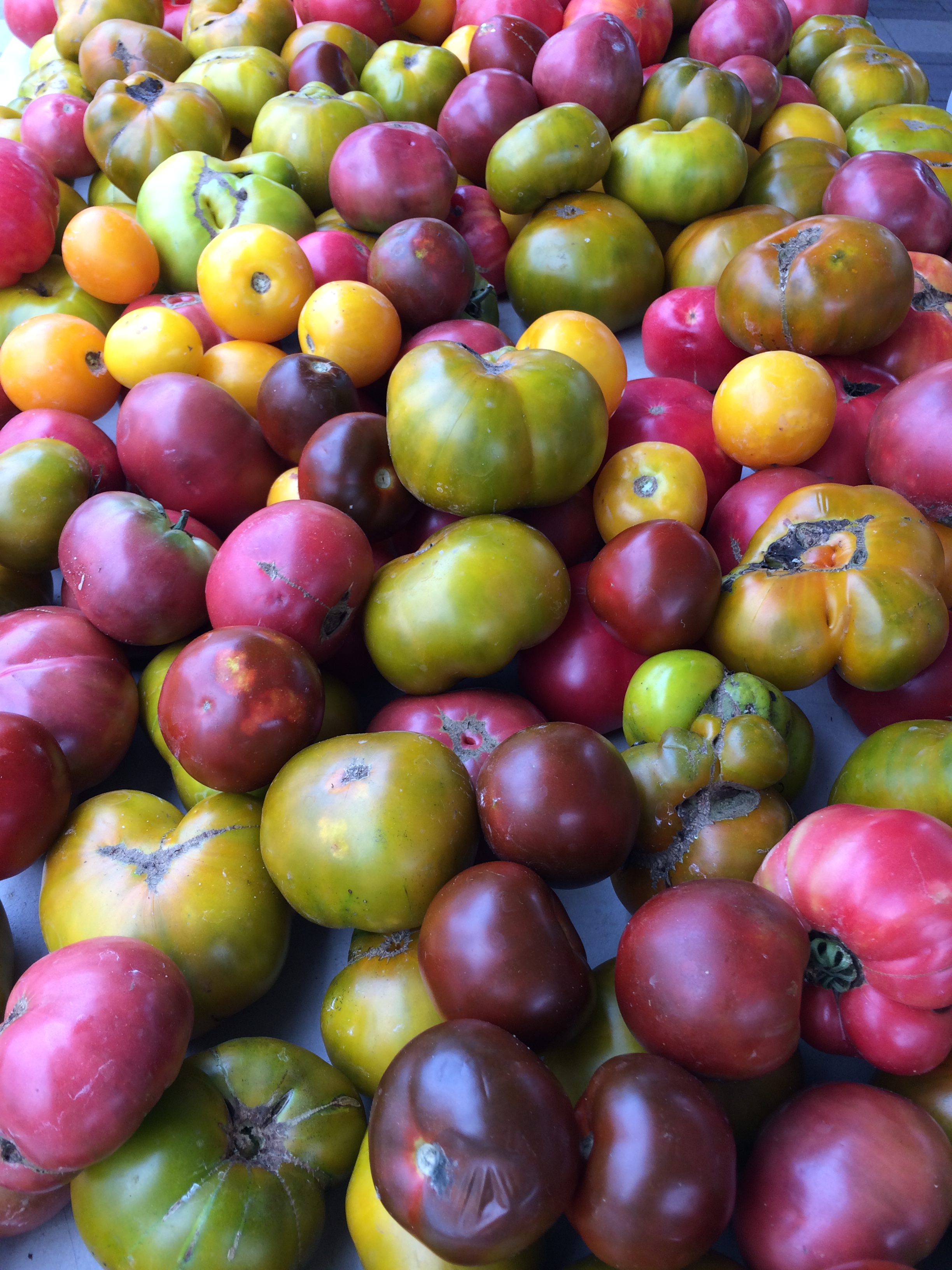 Yesterday, I strolled through a market in Carrboro, NC, visiting friends on the last arc of a three-week trip to the east coast. I quickly became obsessed with the colors of summer’s bounty, perhaps to the quiet embarrassment of the 11-year-old who graciously accompanied me. Yet piled upon folding tables, the rainbow of fruits and vegetables demanded my attention, and I joyously snapped pictures, taking only a casual pause here and there to sample the wares and actually make a purchase or two.