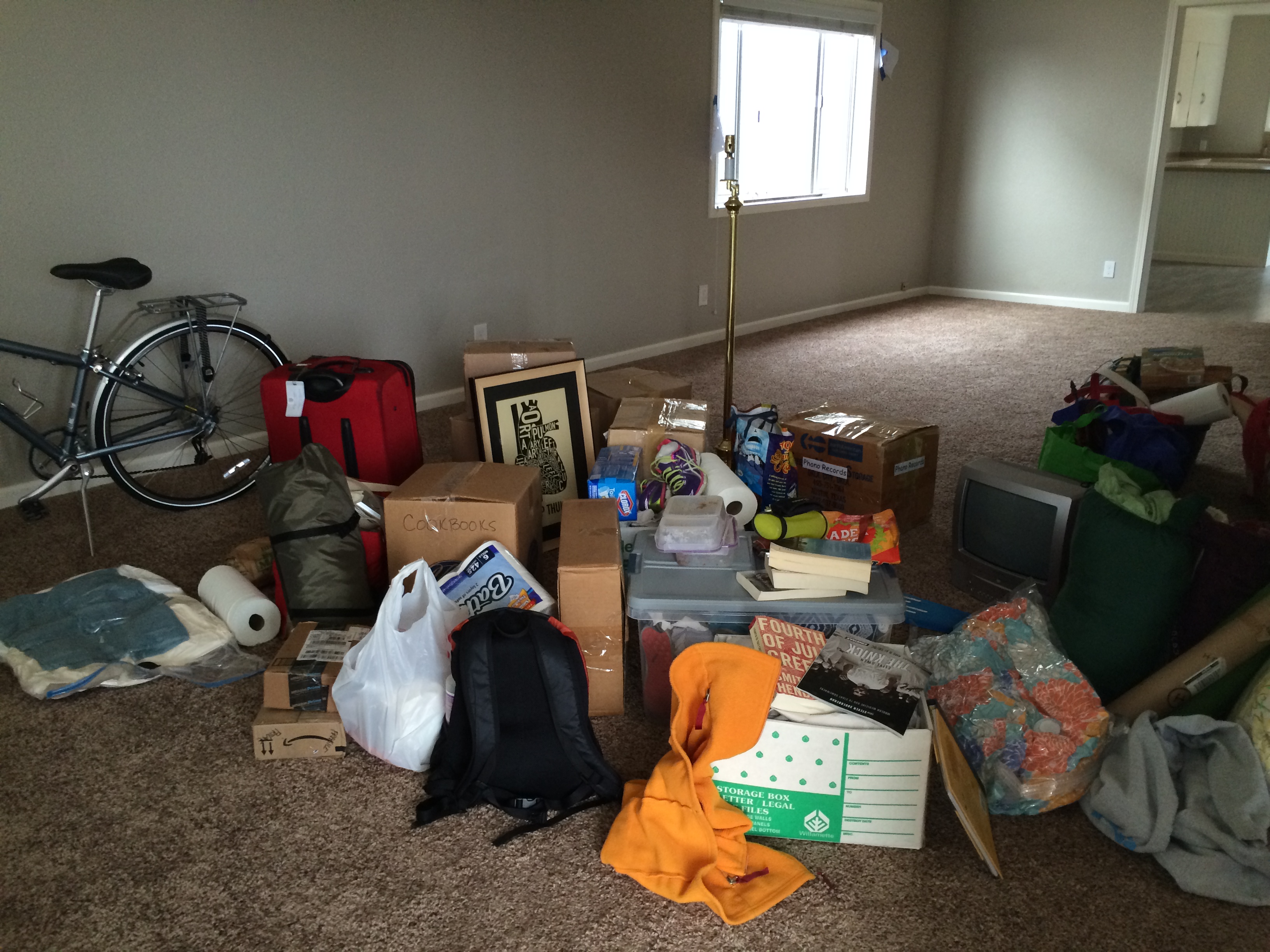 I moved only with what I could carry in my car, with the exception of my bike, which was suspended on the rack clipped onto my hatchback.
