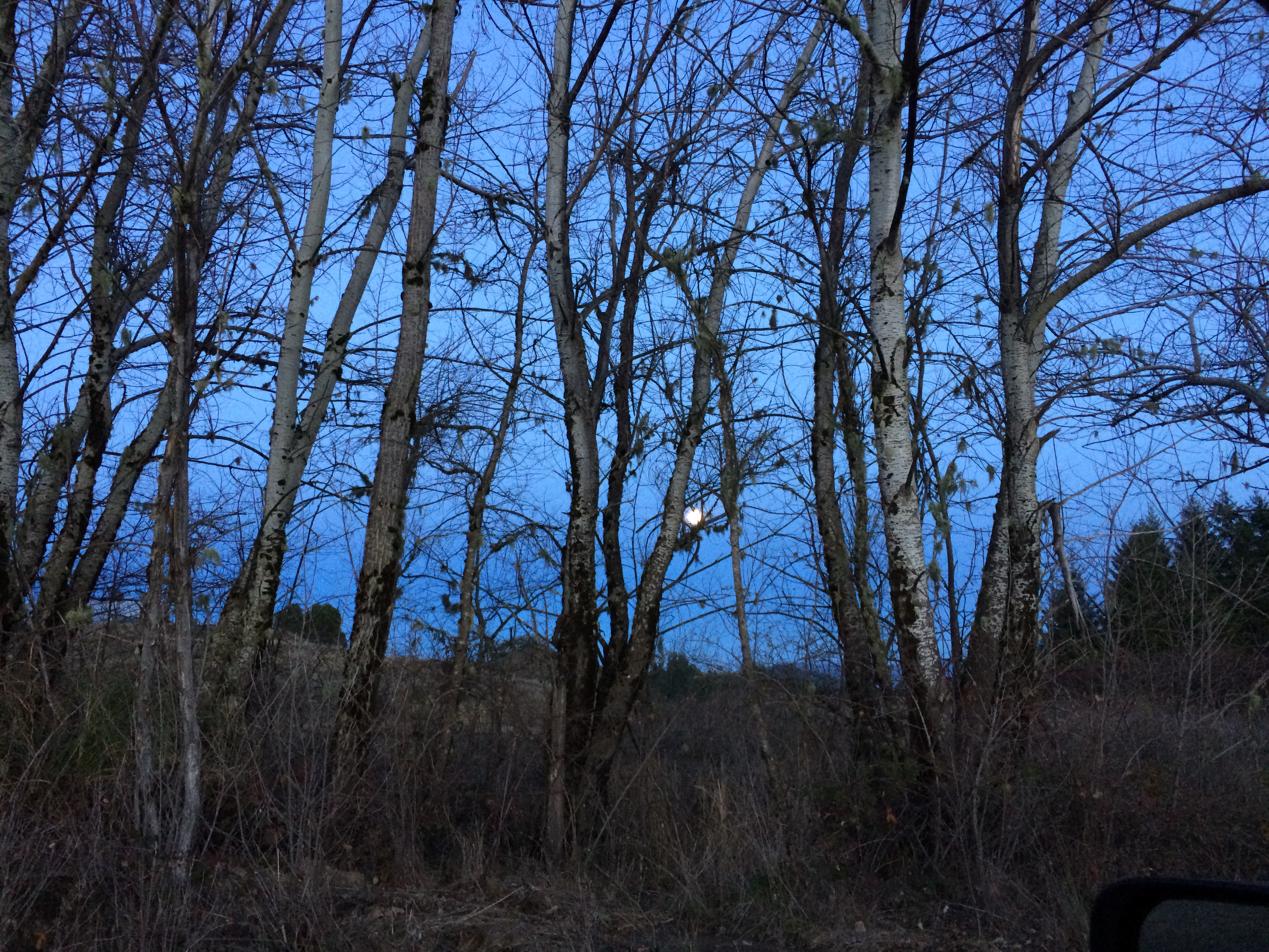 I have some good friends who live a couple of hours away, and going to see them, especially when I first arrived on the coast, was a lifeline that made me feel significantly less alone. I took this picture one evening in January, just as the moon was starting to rise, as I drove to their house for a party belatedly welcoming the new year.
