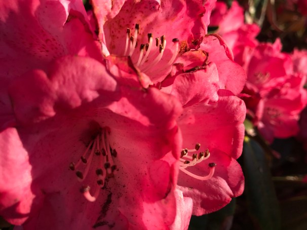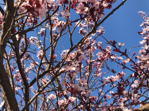 It was a beautiful day but so much of the rest of it was spent working, mainly in front of the computer. In the late afternoon, though, I went for a walk. As I strolled, in the bright bright sun, I started to notice the colors around me, the yellows and purples and pinks. Spring is coming.