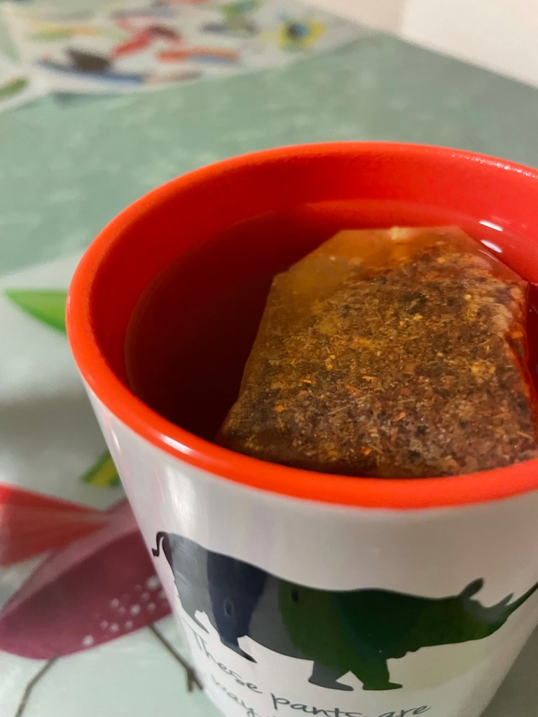 It is the brand that my therapist offers when I come in, prepared to tell her about the griefs and worries in my heart. In her office, she makes it in a red mug, which sometimes matches the clothes she wears, made of fabrics that move, each piece beautiful and cared for well. So often her shoes are the same shade, witchy heels and small buckles and all.