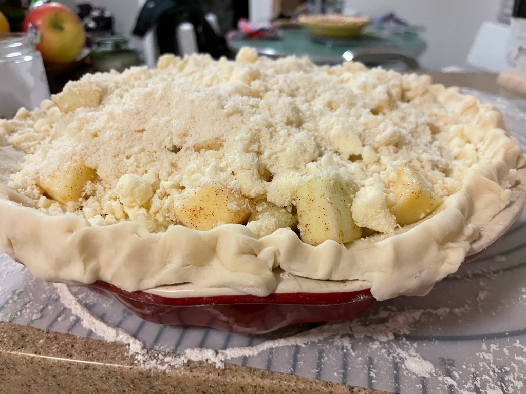 This moment: pie in the oven, radio on, loved ones safe, the sound of a foghorn and my waking son unfurling the day before me.