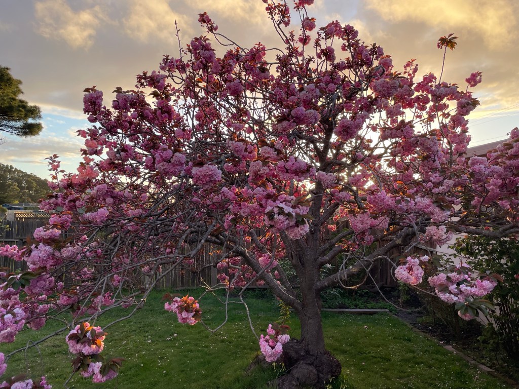 I spent the month of April swooning over the unfurling of pink blossoms on the ornamental Japanese Cherry tree in our backyard. It, too, is from the same era as the record player, as the record; like both, it fills our home with joy. I think of the woman who planted it, the owner who came before us, who also planted the towering monkey puzzle tree, the rhododendrons and hydrangeas. Her name was Jane; in our yard, she left us such treasure. I think of her children, watching these pink blooms explode; I think of my child, who will remember them too.